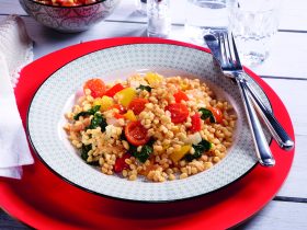 F1282G Pszenna kasza pęczak ze szpinakiem i pomidorkami