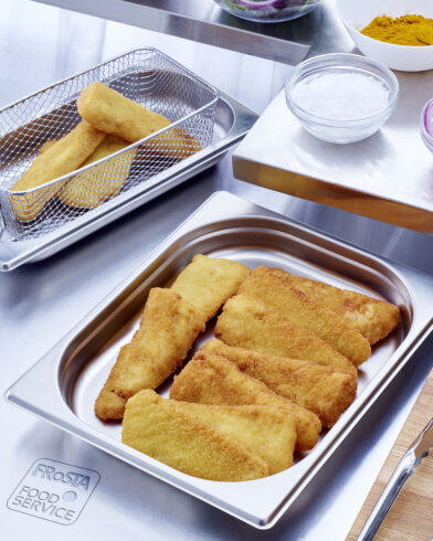 Filety z MINTAJA (74%), mąka PSZENNA, woda, skrobia, sól, drożdże, przyprawy (kurkuma, papryka).